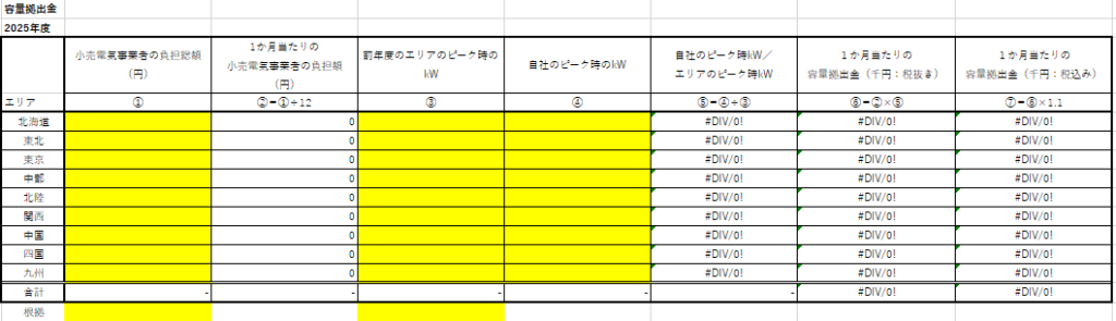 容量拠出金の計算方法は公表されており、各年度の公表数字等をベースに計算することも可能です。ただ、一から計算するとなると手間もかかりますので、バックデータシートには、入力項目も整理され記載されており計算式も入っていますのでこちらを活用されるのが良いかと思います。なお、このシートを活用した場合も、計算根拠(なにを参考にしたか)の記載は必要です。