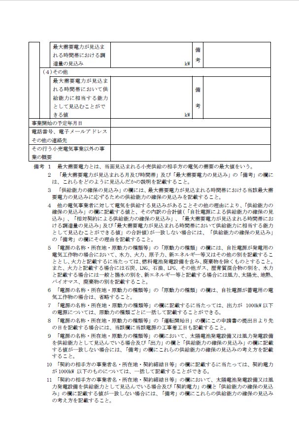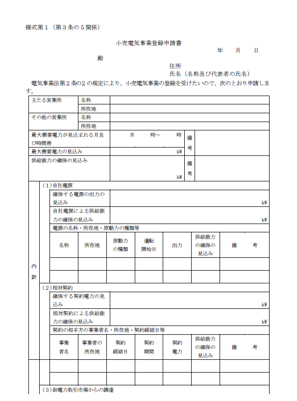 小売電気事業登録 小売電気事業登録申請書(様式第1)について